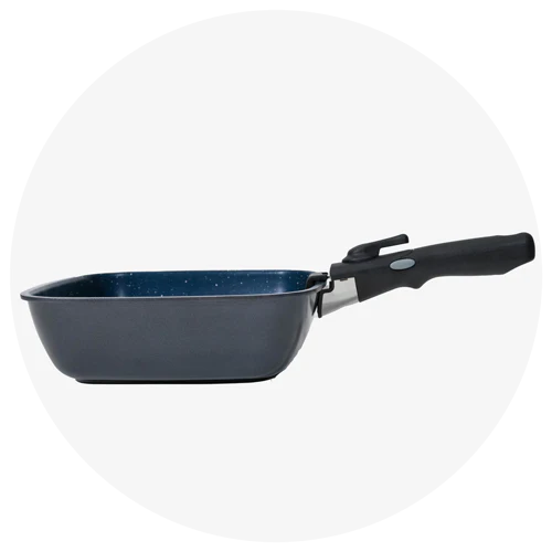 Cool-Touch Detachable Handle - for quick, safe moves from hob to oven, plate, and dishwasher.